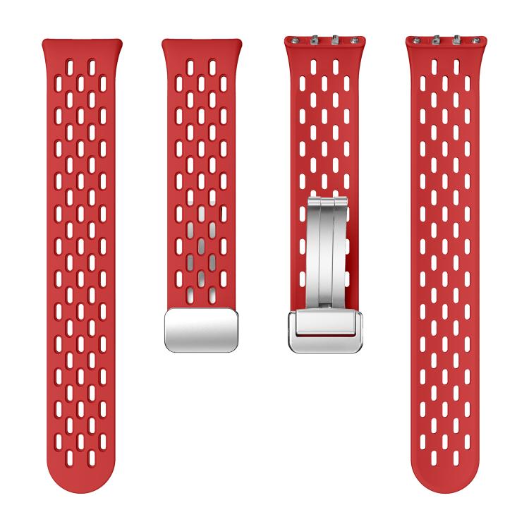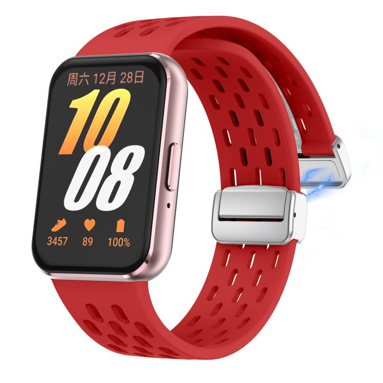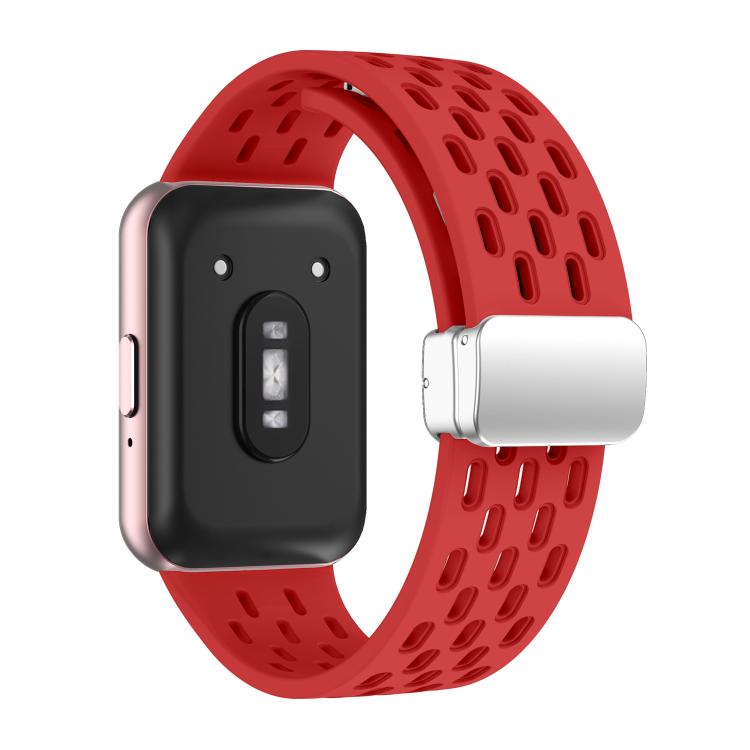 Correa de silicona con hebilla plateada magnética de malla xDfind para Samsung Galaxy Fit 3 (roja)