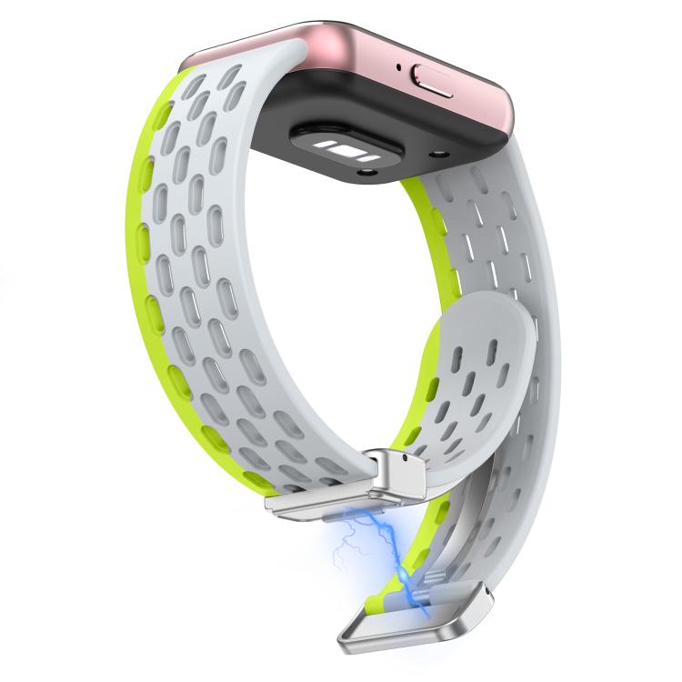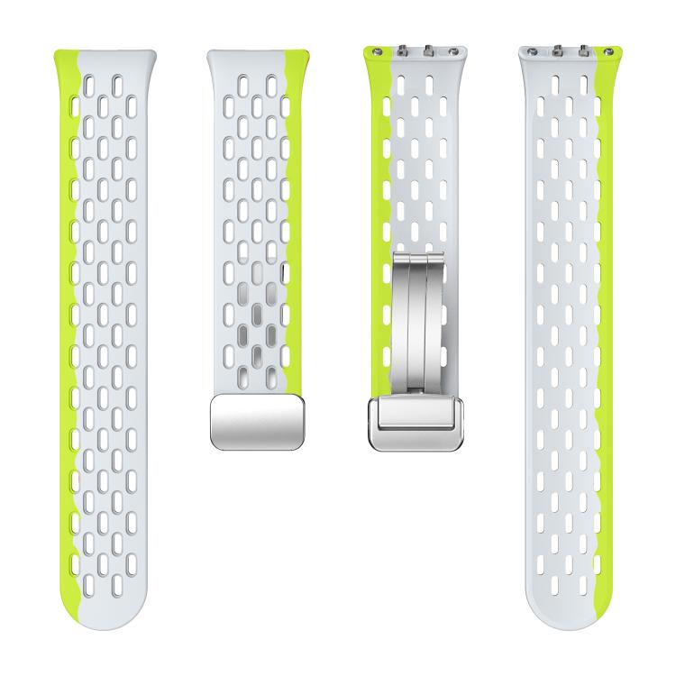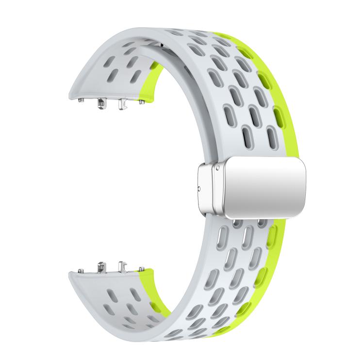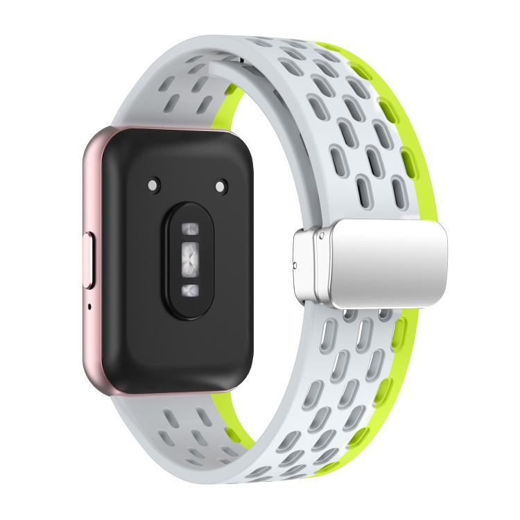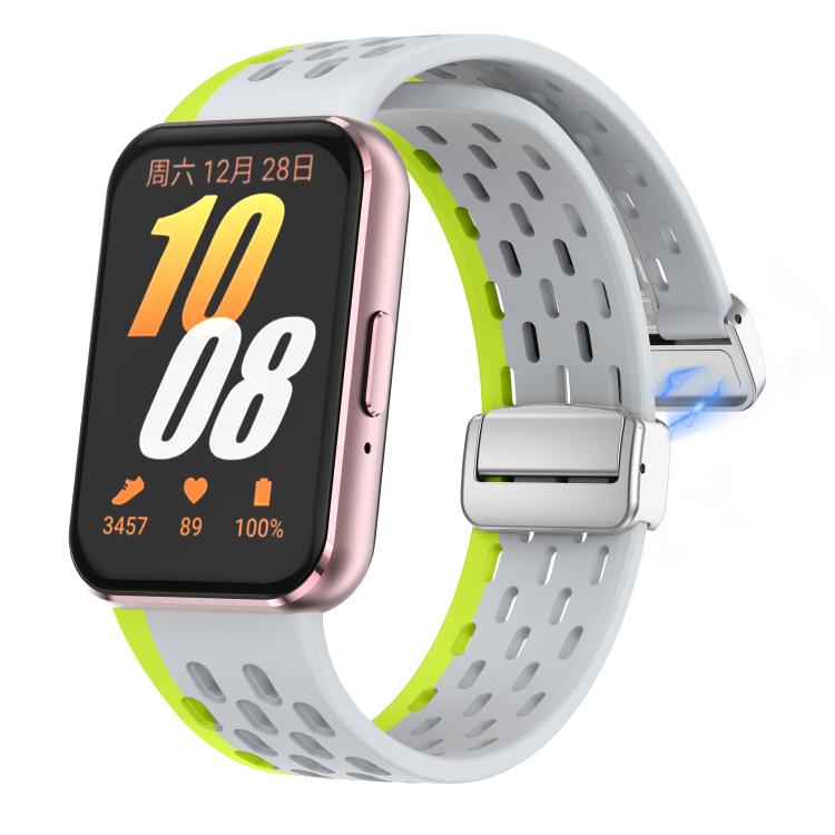Correa de silicona con hebilla plateada magnética de malla xDfind para Samsung Galaxy Fit 3 (Wild Path, gris y verde)