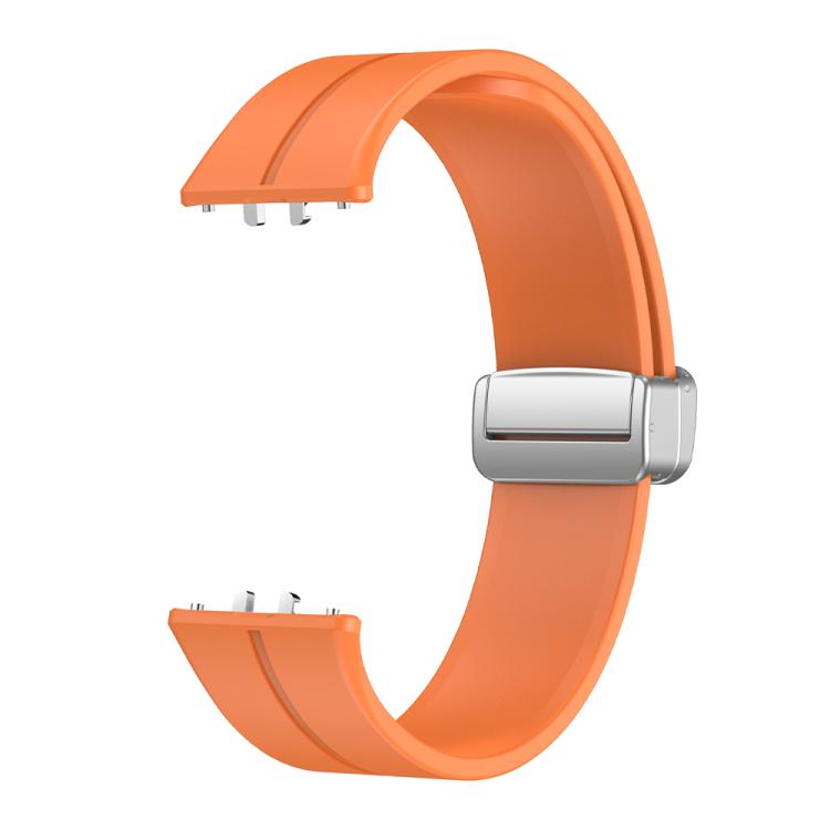 Correa de silicona con hebilla plateada y cierre magnético para Samsung Galaxy Fit 3 (naranja)