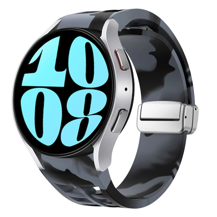 Correa de Silicona Samsung Galaxy Watch 6 40/44mm con Hebilla Plateada y Cierre Magnético (Camuflaje Negro y Gris)