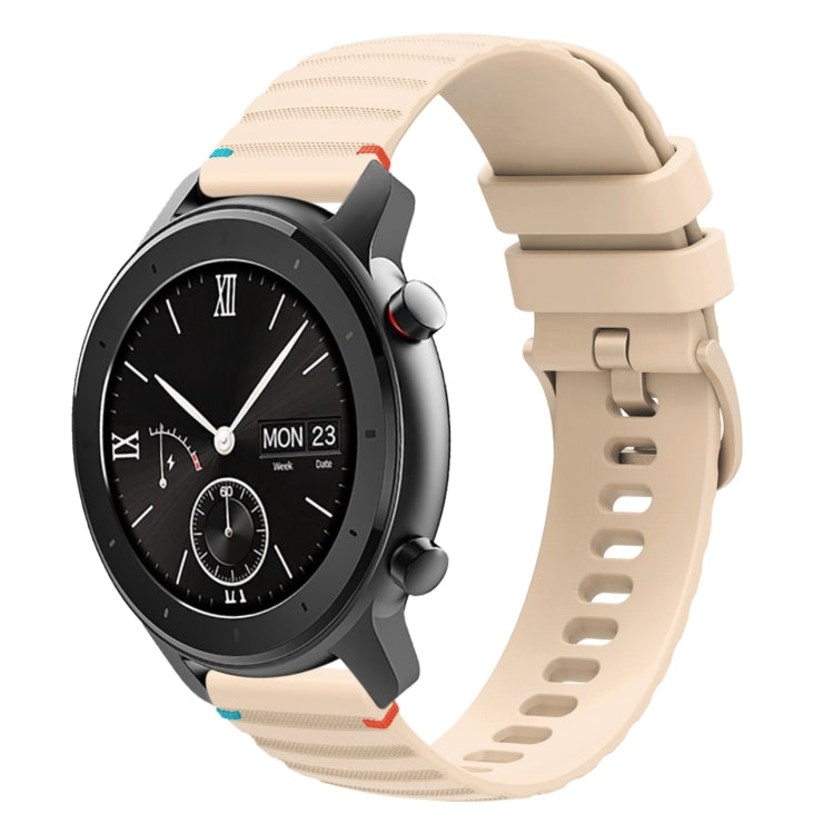 Correa de Silicona 20mm para Reloj Amazfit GTR 42mm con Puntadas Onduladas y Puntos (Crema)