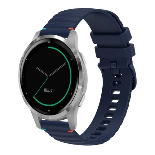 Correa de Silicona para Reloj Garmin Active S 18mm (Azul Marino) con Puntadas Onduladas y Puntos