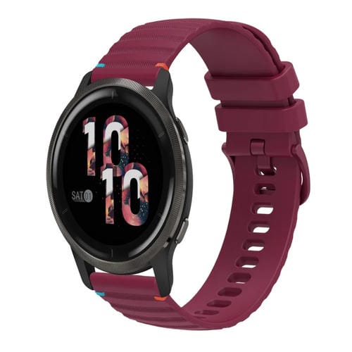 Correa de Silicona Garmin Venu 2 22mm con Puntadas Onduladas y Puntos (Rojo Vino)