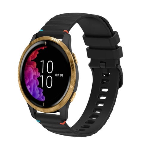 Correa de Silicona con Puntadas Onduladas y Puntos para Reloj Garmin Venu 20mm (Negra)