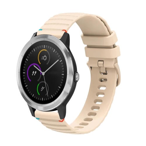 Correa de Silicona Garmin Vivoactive 3 20mm con Puntadas Onduladas y Puntos (Crema)