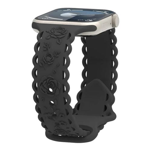 Correa de Silicona con Relieve 3D de Encaje Rosa para Apple Watch Se 2022 de 40mm (Negra)