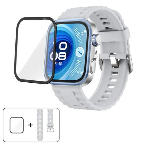 Correa de silicona de color sólido con película curva 3D para Huawei Watch Fit 4 Pro (gris claro)