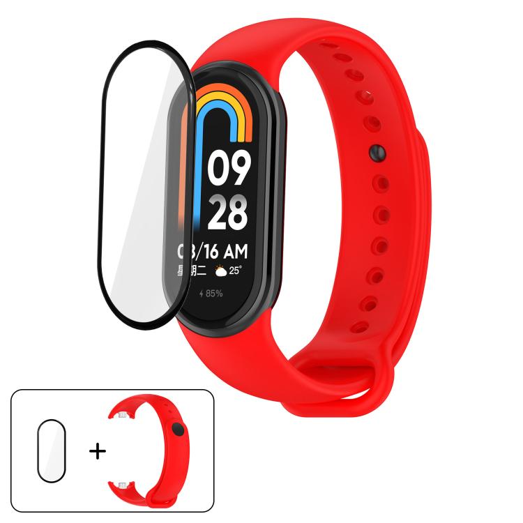 Correa de silicona de color sólido con película curva 3D para Xiaomi Smart Band 10/10 NFC (roja)