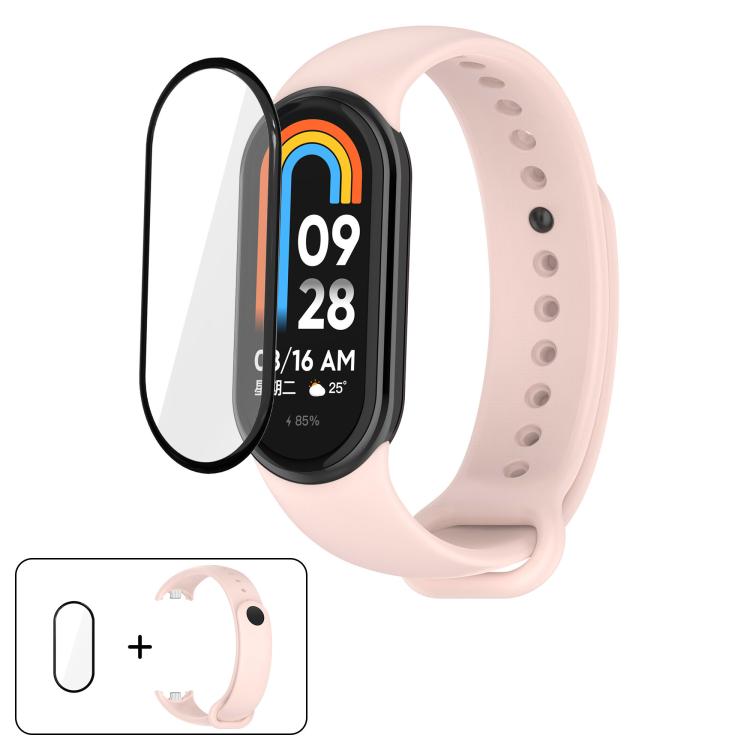 Correa de silicona de color sólido con película curva 3D para Xiaomi Smart Band 10/10 NFC (rosa)