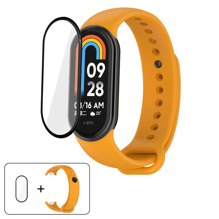 Correa de silicona de color sólido con película curva 3D para Xiaomi Smart Band 9/9 NFC (amarilla)
