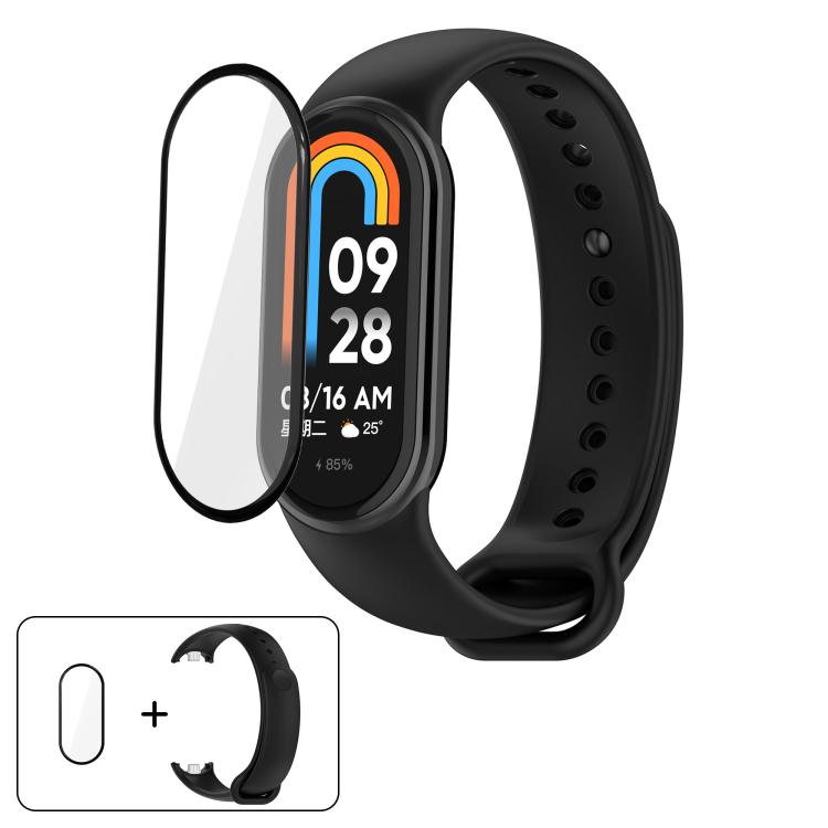Correa de silicona de color sólido con película curva 3D para Xiaomi Smart Band 9/9 NFC (negra)