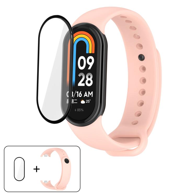 Correa de silicona de color sólido con película curva 3D para Xiaomi Smart Band 9/9 NFC (rosa claro)