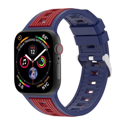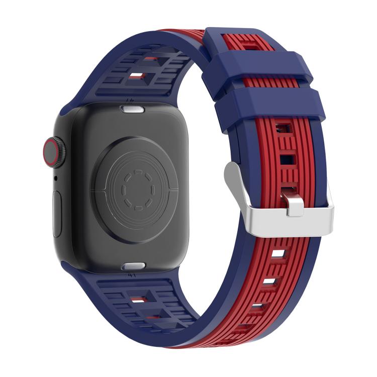 Correa de silicona de rayas verticales bicolor para Apple Watch de 42 mm, 41 mm, 40 mm y 38 mm (azul marino y burdeos)