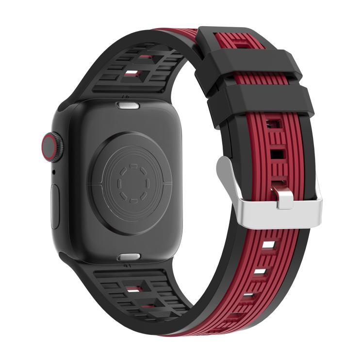 Correa de silicona de rayas verticales bicolor para Apple Watch de 46 mm, 49 mm, 45 mm y 44 mm (negro y burdeos)