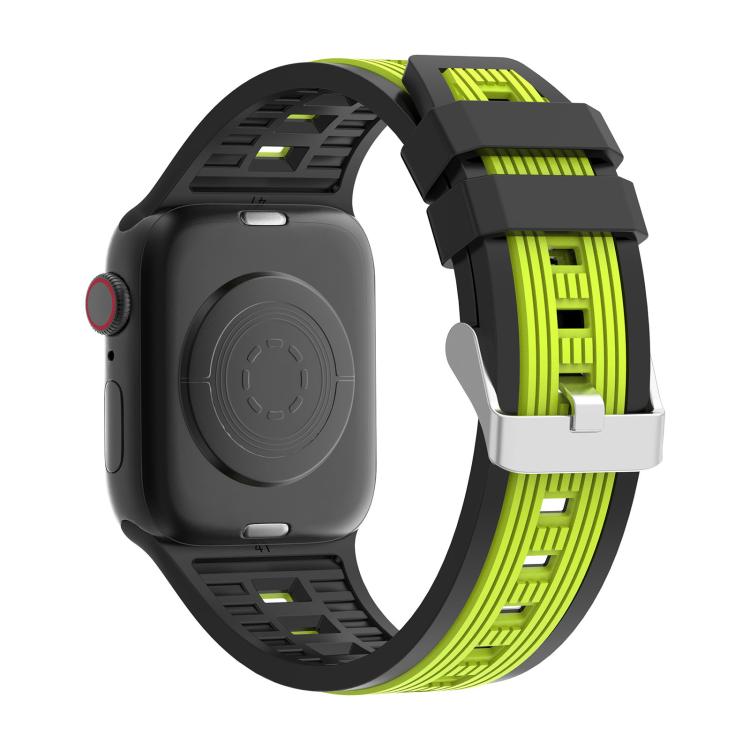 Correa de silicona de rayas verticales bicolor para Apple Watch de 46 mm, 49 mm, 45 mm y 44 mm (negro y verde lima)