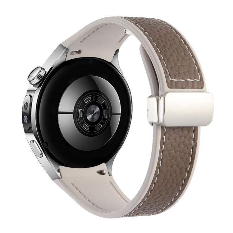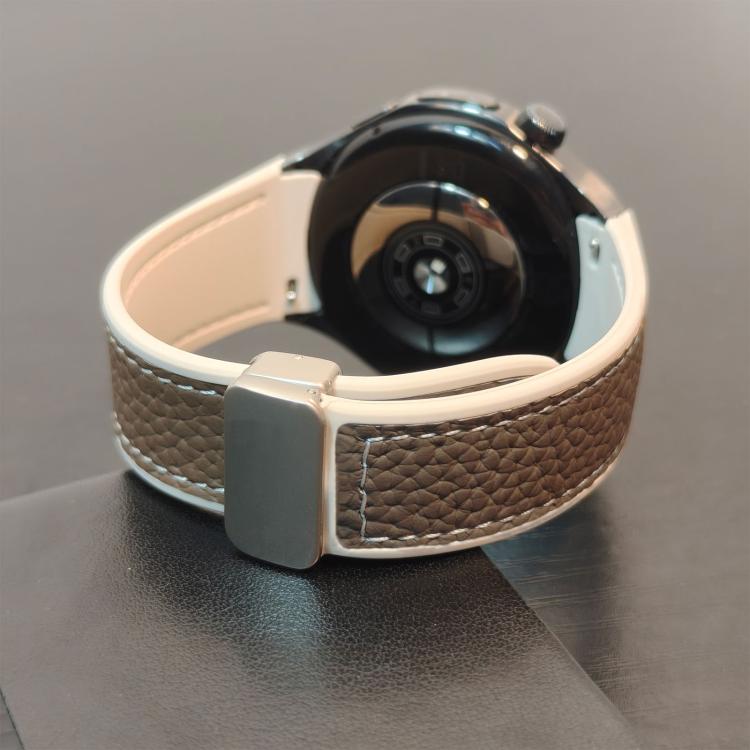 Correa de silicona híbrida con hebilla magnética para Huawei Watch 5 de 46 mm (gris, marrón, lichi, con textura de estrella)