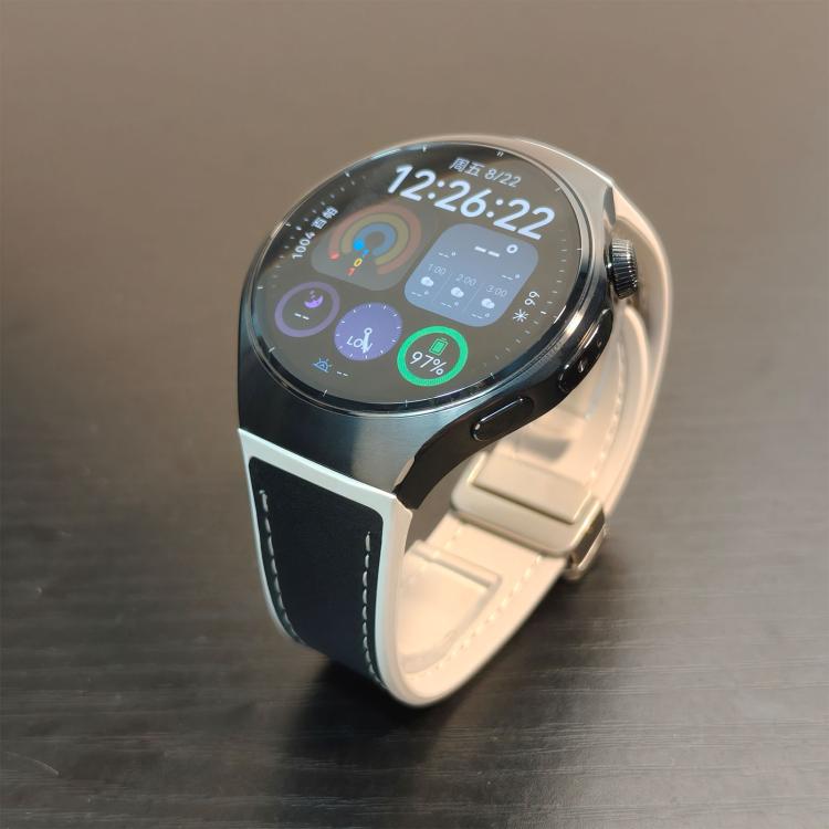 Correa de silicona híbrida con hebilla magnética para Huawei Watch 5 de 46 mm (negro napa con textura Starlight)