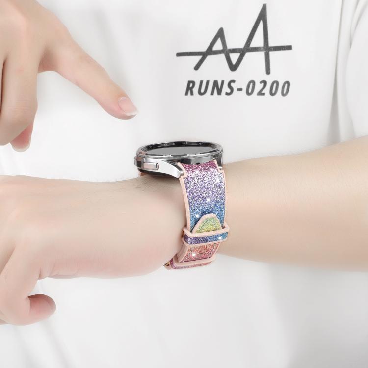 Correa de silicona híbrida de cuero con purpurina para Samsung Galaxy Watch 7 (40/44 mm) (arcoíris)
