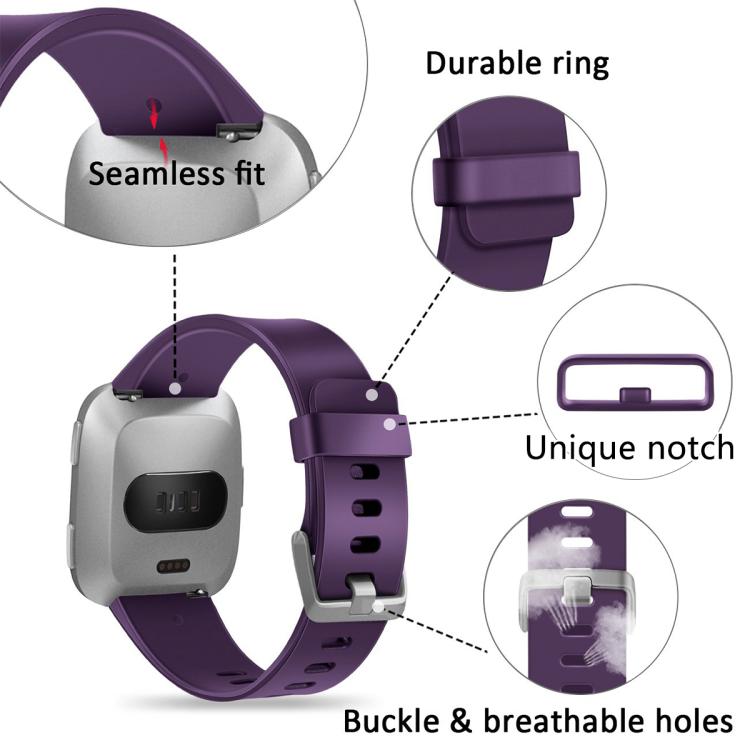 Correa de silicona lisa con agujeros planos para Fitbit Versa 2 / Versa / Versa Lite xDfind, talla L (morado oscuro)