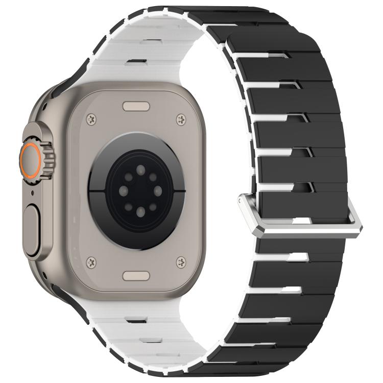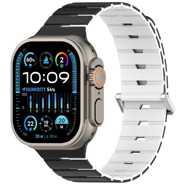 Correa de silicona magnética bicolor estilo melódica (negro y blanco) para Apple Watch de 46 mm / 49 mm / 45 mm / 44 mm