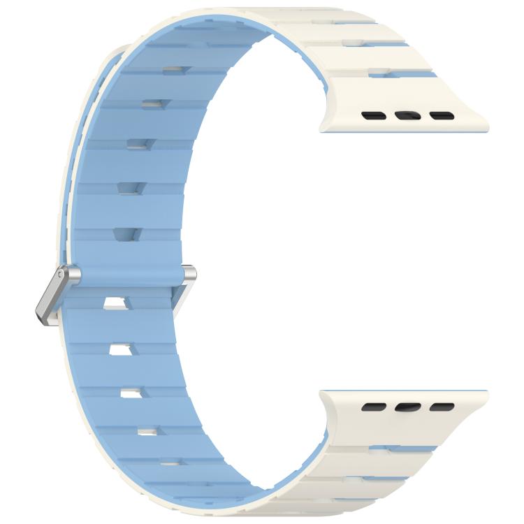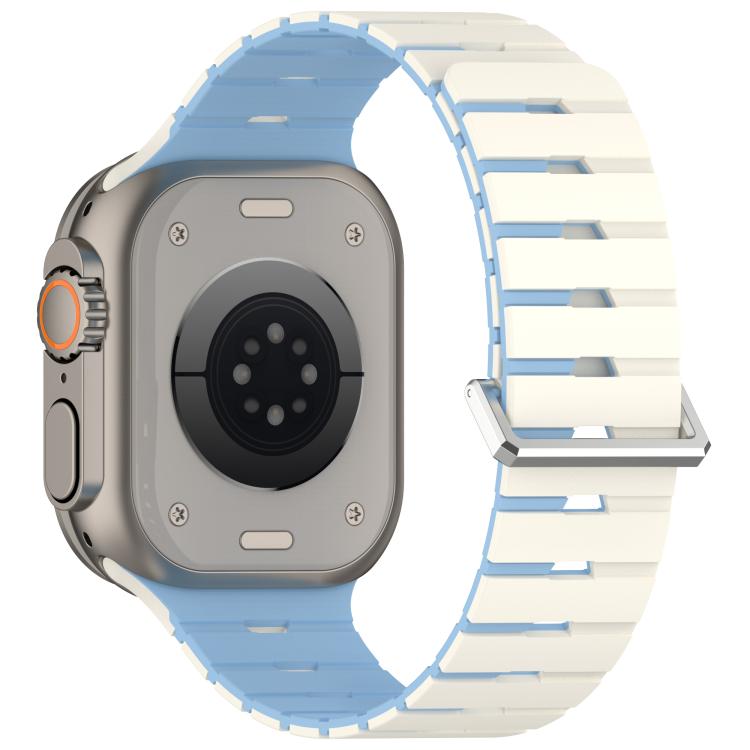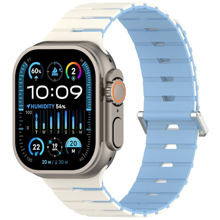 Correa de silicona magnética bicolor estilo melódica para Apple Watch de 46 mm / 49 mm / 45 mm / 44 mm (blanco antiguo, azul niebla).