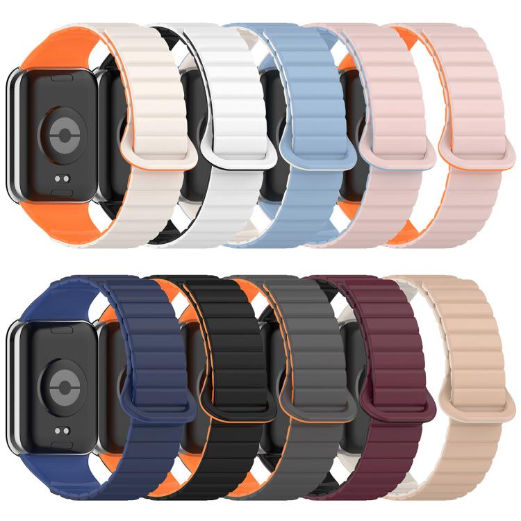 Correa de silicona magnética bicolor para Xiaomi Smart Band 9 Pro y Redmi Watch 5 (negro y naranja)