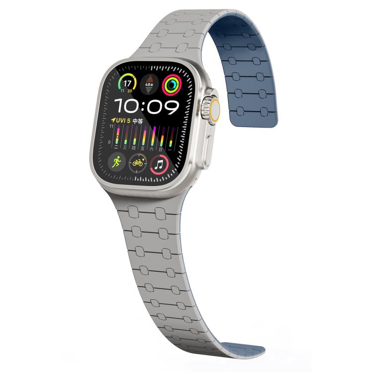 Correa de silicona magnética con colores contrastantes xDfind para Apple Watch de 42, 44, 45, 46 y 49 mm (gris y azul)