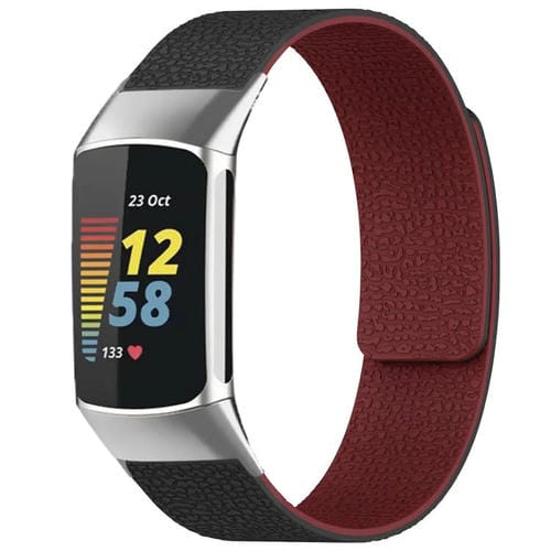 Correa de silicona magnética con textura de lichi para Fitbit Charge 5/Charge 6 xDfind (negro y rojo)