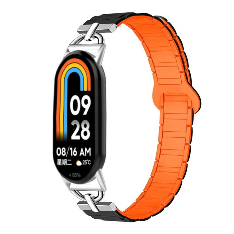 Correa de silicona magnética con tres cuentas en forma de D para Xiaomi Smart Band 10/9/8 (negro y naranja)