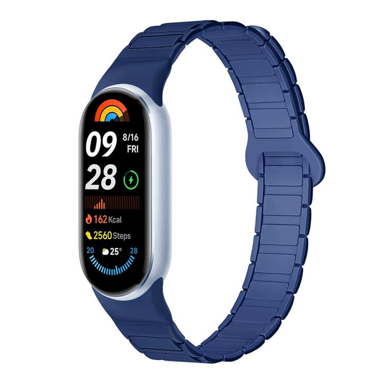 Correa de silicona magnética de tres cuentas para Xiaomi Smart Band 10/9/8 (azul marino oscuro claro)