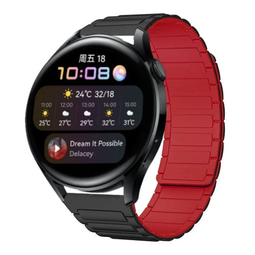 Correa de Silicona Magnética en Forma de I para Huawei Watch 3 de 22mm (Negra y Roja)