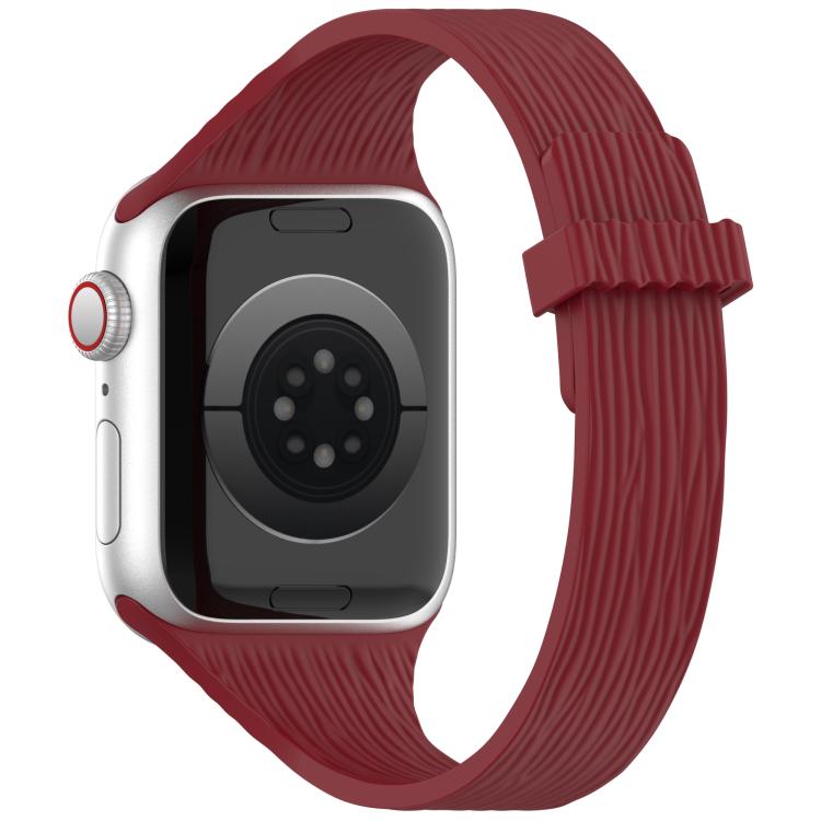 Correa de silicona magnética para Apple Watch de 46 mm, 49 mm, 45 mm y 44 mm con diseño de madera y vetas de agua (color vino tinto)