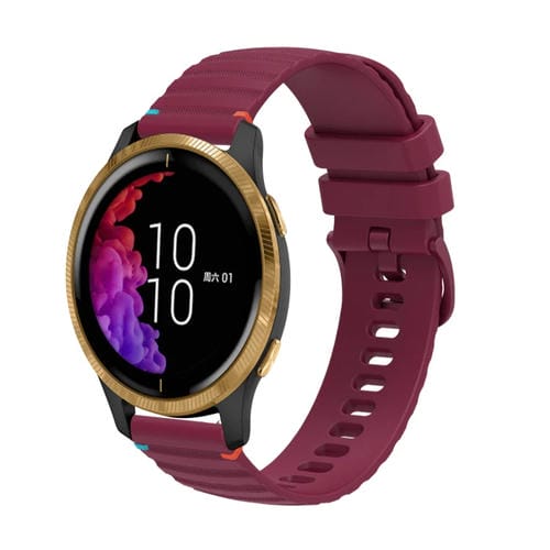 Correa de Silicona Garmin Venu 20mm Puntadas Onduladas Puntos (Rojo Vino)