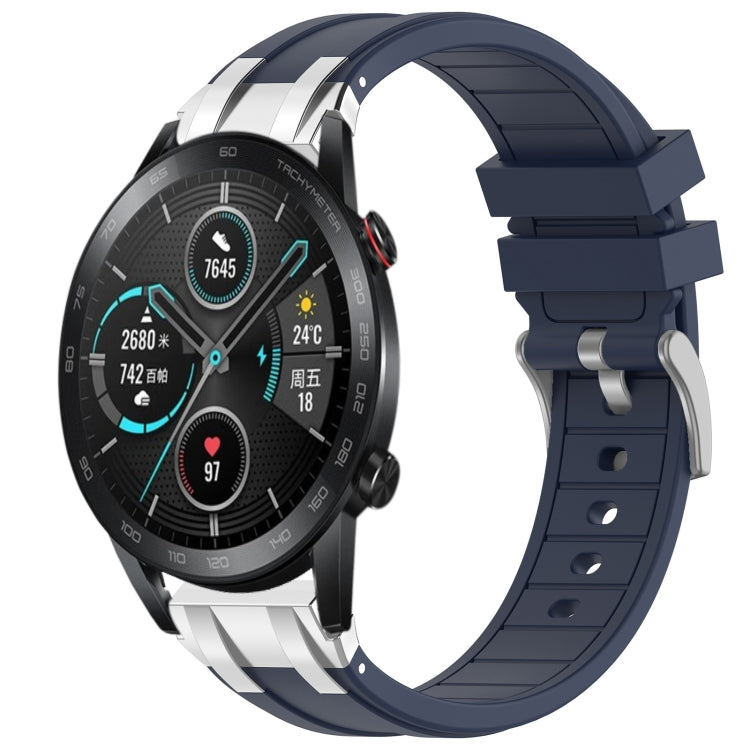 Correa de Silicona para Reloj Honor Magic Watch 2 42mm 20mm Hebilla Plateada (Azul Marino)