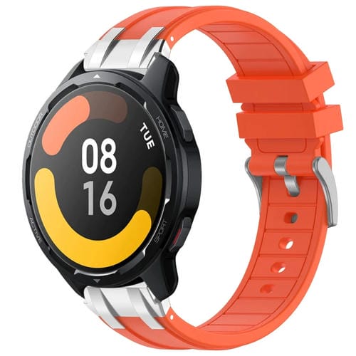 Correa de Silicona para Reloj Xiaomi Watch S1 Active de 22mm con Hebilla Plateada de Liberación Rápida (Naranja)