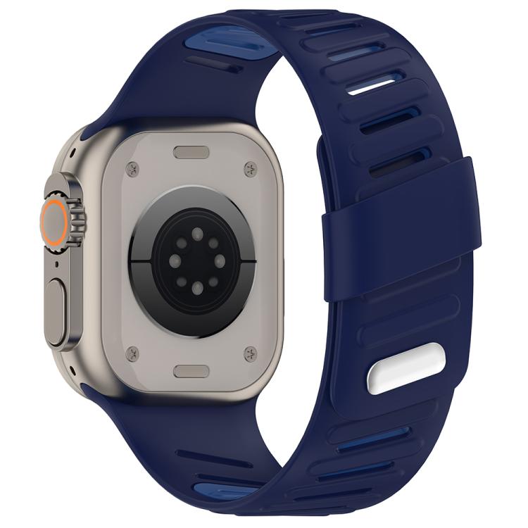 Correa de silicona transpirable bicolor con hebilla oblicua para Apple Watch de 46 mm, 49 mm, 45 mm y 44 mm (azul marino)