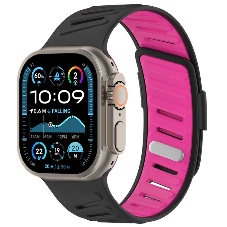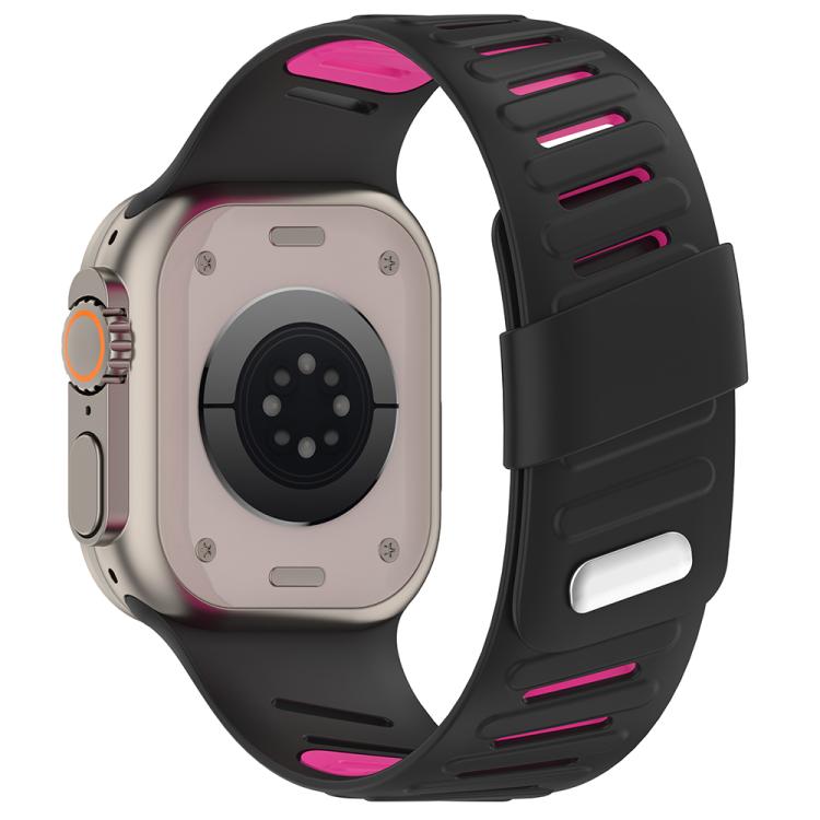 Correa de silicona transpirable bicolor con hebilla oblicua para Apple Watch de 46 mm, 49 mm, 45 mm y 44 mm (negro, rosa y barbie).
