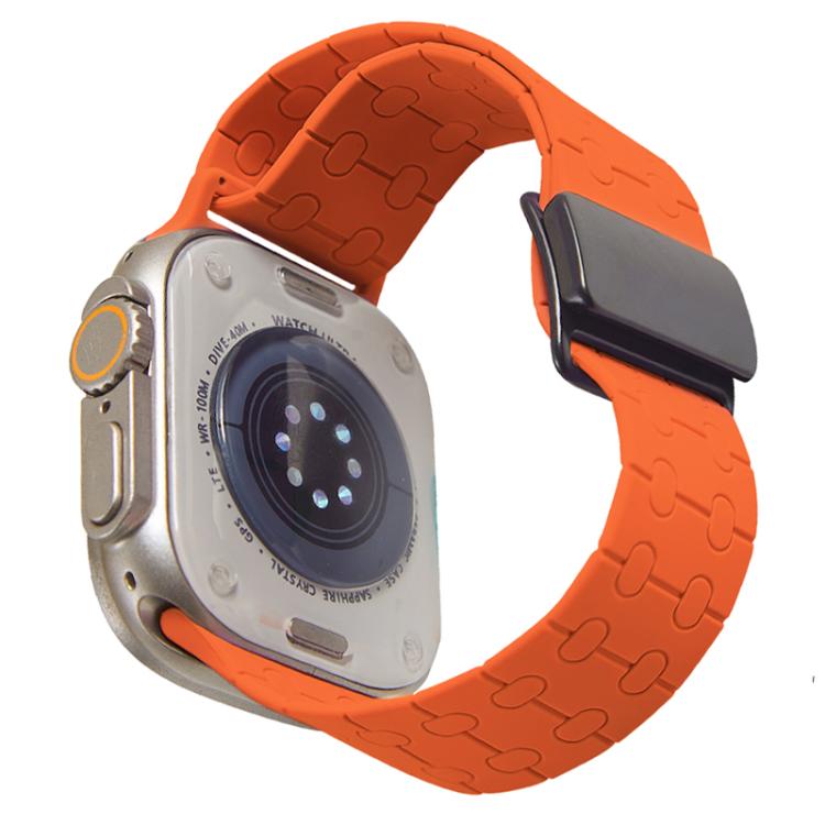 Correa de silicona transpirable con hebilla magnética para Apple Watch de 46 mm, 49 mm, 45 mm y 44 mm (naranja)
