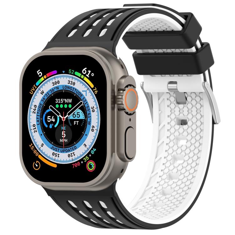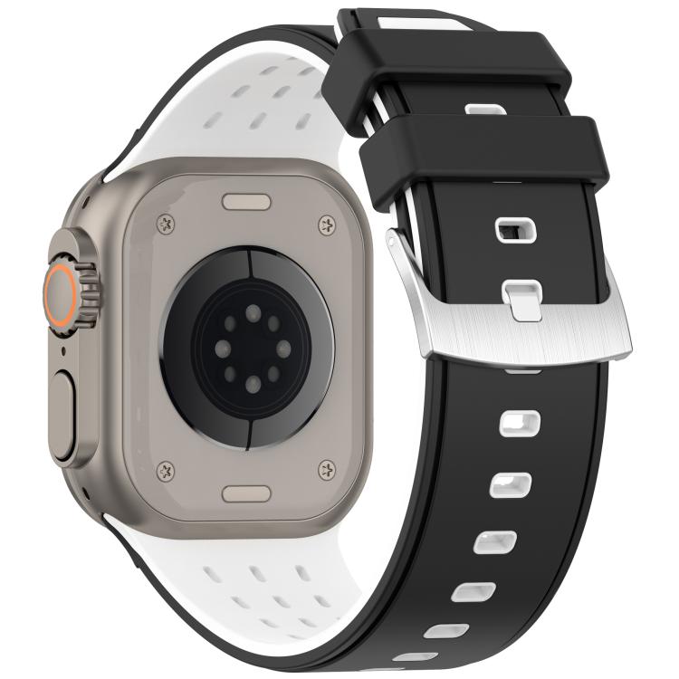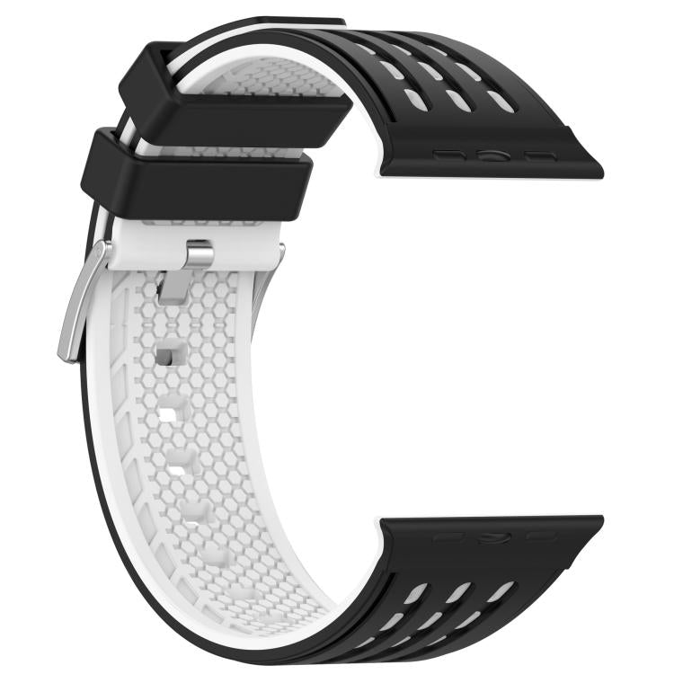 Correa de silicona transpirable de dos colores con agujeros verticales para Apple Watch de 46 mm, 49 mm, 45 mm y 44 mm (negro y blanco)