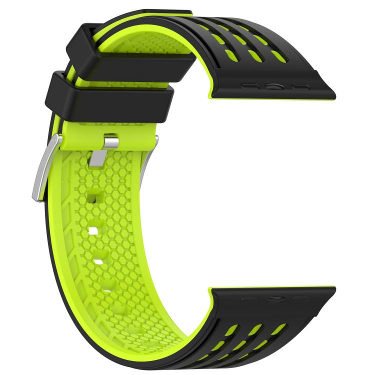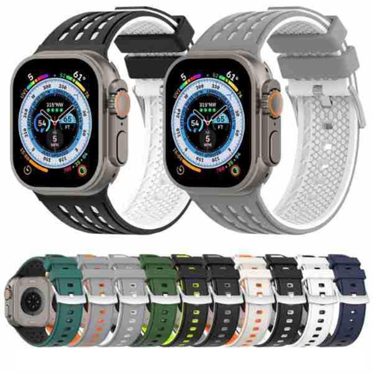 Correa de silicona transpirable de dos colores con agujeros verticales para Apple Watch de 46 mm, 49 mm, 45 mm y 44 mm (negro y verde)