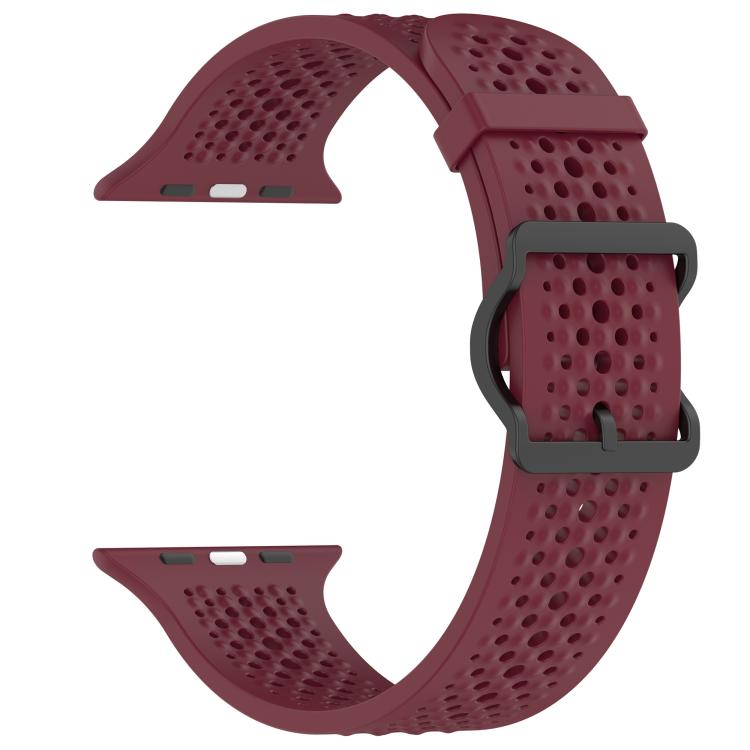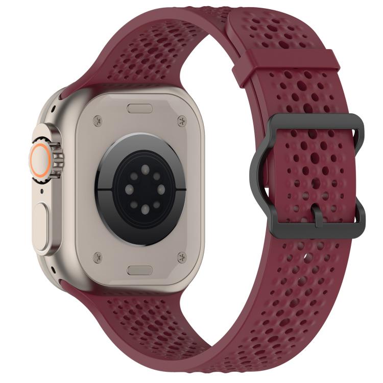 Correa de silicona transpirable para Apple Watch de 46 mm, 49 mm, 45 mm y 44 mm (color burdeos)