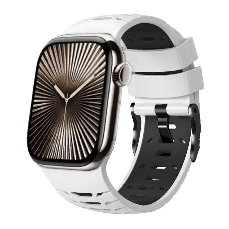 Correa de silicona trapezoidal de dos colores para Apple Watch de 46 mm, 49 mm, 45 mm y 44 mm (blanco y negro)
