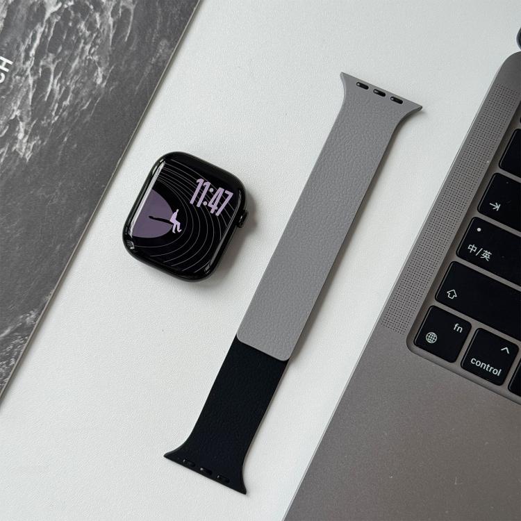 Correa magnética de silicona bicolor con textura de lichi para Apple Watch de 42 mm / 41 mm / 40 mm / 38 mm (negro/gris).