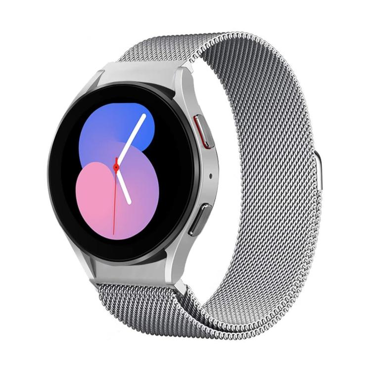 Correa magnética milanesa de acero inoxidable con película curva 3D para Samsung Galaxy Watch4 Active de 44 mm (plateada)