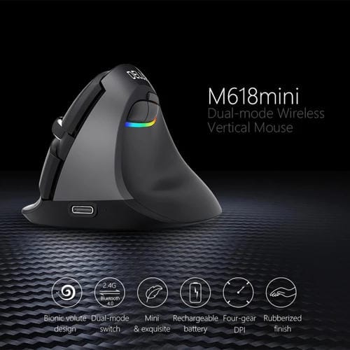 - 1x Ratón Vertical Ergonómico Delux M618 Mini 2.4G Wireless 2400Dpi ReCargable USB (Gris)