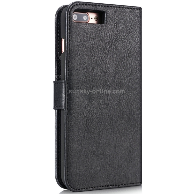 Funda Protectora Dg.Ming iPhone 8 Plus y 7 Plus Crazy Horse Texture Magnética Desmontable Tapa Horizontal Soporte Ranuras Tarjetas Billetera (Negro)