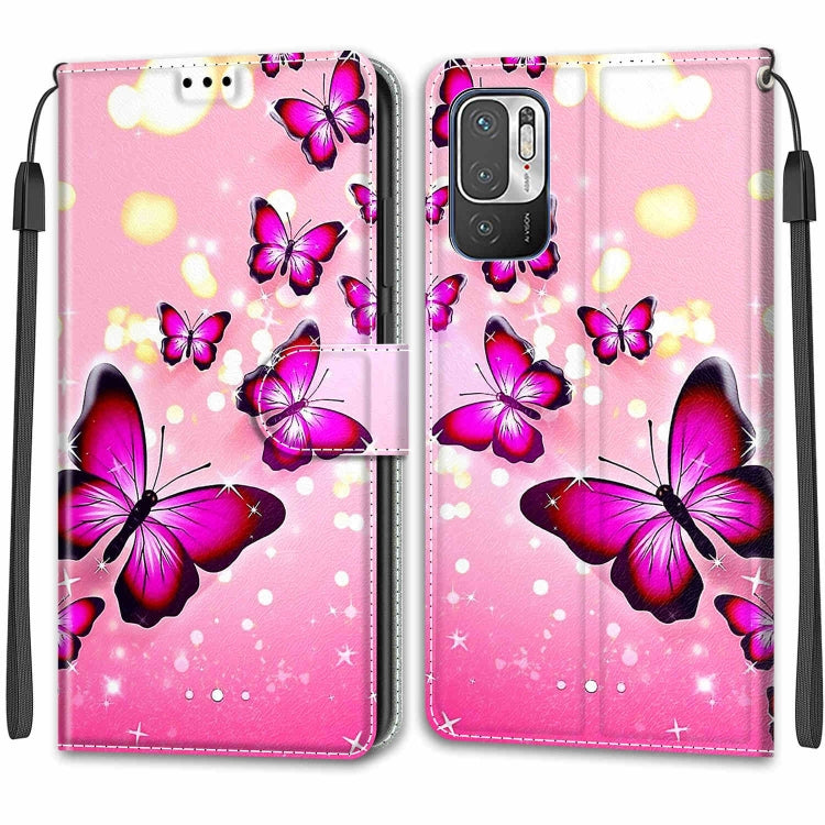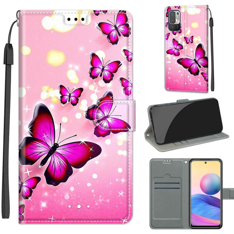 Dibujo de Color Voltaje Cierre Magnético Cierre de Cuero Horizontal Flip Pu Funda con Soporte y Ranuras para Tarjeta para Xiaomi Redmi Note 10 5G (C03 Degradado Rosa Rosa Mariposas Voladoras)