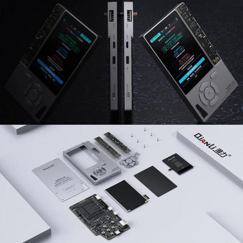 El dispositivo de detección de restauración multifuncional Qianli Apollo Interestellar (Edición Internacional) está diseñado para ofrecer una solución integral en la reparación y diagnóstico de múltiples modelos de iPhone, incluyendo iPhone 11, 11 Pro Max, 11 Pro, X, Xs, Xs Max, Xr, 8, 8 Plus, 7 y 7 Plus. Este equipo profesional permite realizar funciones avanzadas como la detección de Sensores de luz, restauración de tonos verdaderos, verificación y reparación de Cables de datos, lectura y activación de Baterías, así como la reparación de Vibradores. Además, incluye la lectura y escritura del chip de Banda Base, consolidando seis herramientas esenciales en un solo dispositivo. Su Pantalla HD de 3.5 pulgadas facilita la visualización de datos y soporta múltiples idiomas, incluyendo chino, inglés y español, lo que lo convierte en una herramienta versátil para técnicos especializados en mantenimiento de dispositivos Apple.