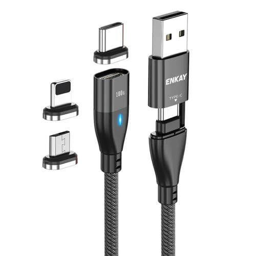Cable 6-En-1 Enkay Pd100W Usb-A Tipo-C 8 Pines Micro Usb Carga Rápida (Negro)