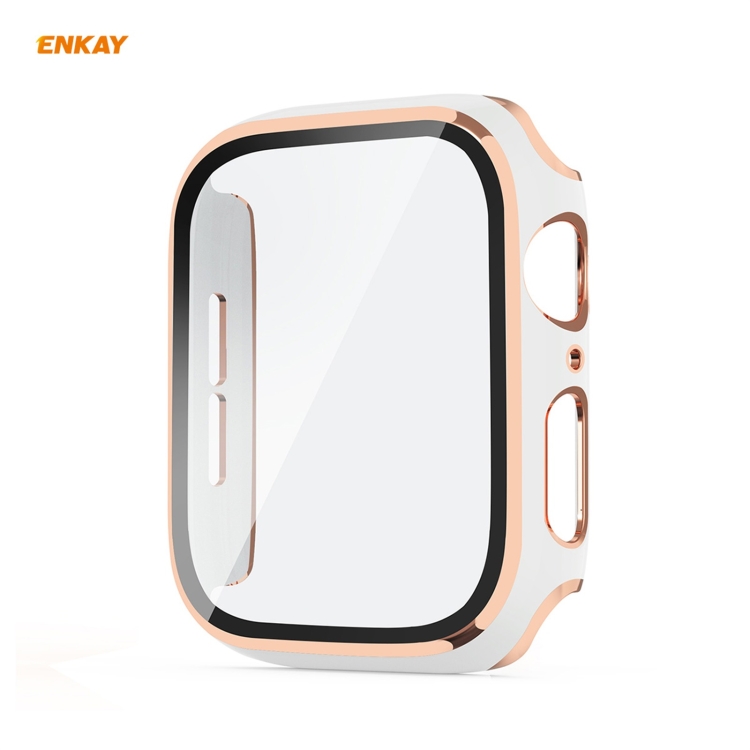 Funda PC Electroplateada Enkay Hat-Prince + Protector Vidrio Templado para Apple Watch Serie 6/5/4/SE 44mm (Blanco + Champagne)